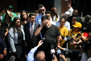 जुलाई १७ मा न्यूयोर्कको अमेरिकी अध्यागमन अदालतमा संघीय अध्यागमन अधिकारीहरूले लिफ्ट लिए।