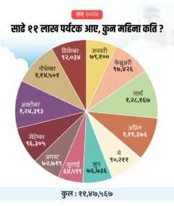 अन्तर्राष्ट्रिय पर्यटन बजारमा उत्कृष्ट पर्यटन गन्तव्य मुलुकको पहिचान बनाएको नेपालमा पर्यटक आगमन भने औसत छ । गएको वर्ष पनि नेपालले औसत आगमनमै चित्त बुझाएको छ । नेपाल पर्यटन बोर्डका अनुसार २०२४ मा ११ लाख ४७ हजार ५ सय ६७ पर्यटक नेपाल आएका छन् । तथ्यांक अनुसार एक वर्षमा नेपालले मासिक ९५ हजार ६ सय ३० पर्यटक मात्र भित्र्याउन सकेको छ ।