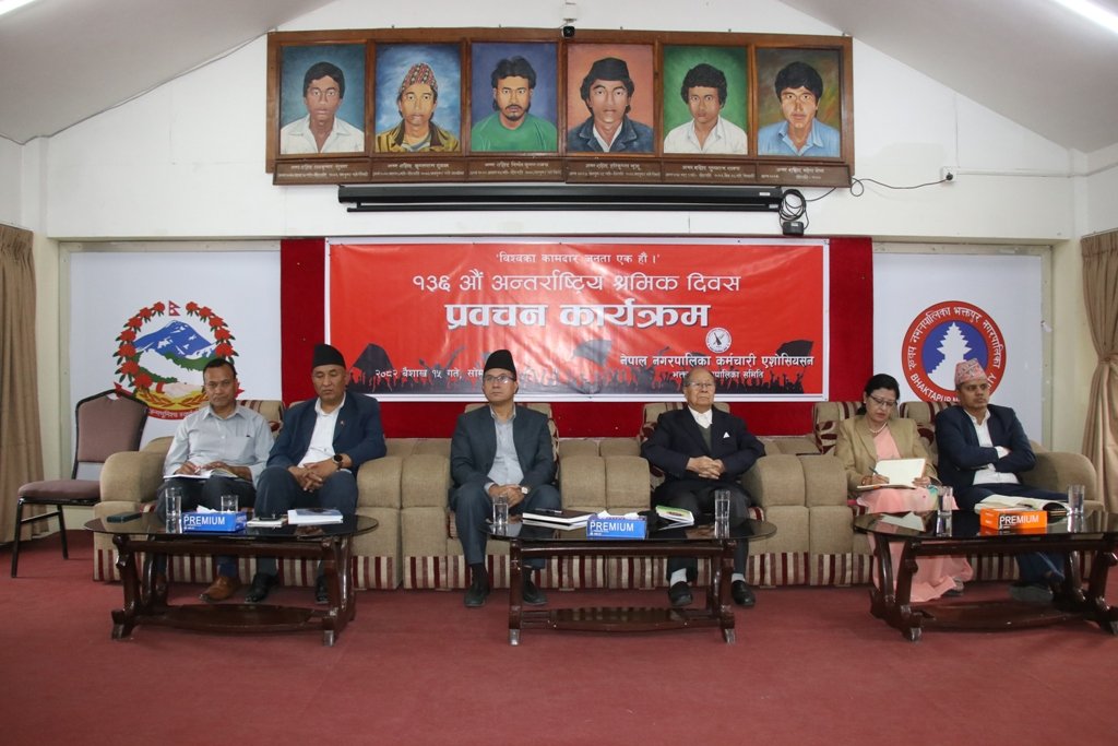 नेपाल मजदुर किसान पार्टीका अध्यक्ष नारायणमान बिजुक्छेँ (रोहित) को प्रमुख आतिथ्यमा नेपाल नगरपालिका कर्मचारी एशोसियसन भक्तपुर नगरपालिका समितिको आयोजनामा १३६ औं अन्तर्राष्ट्रिय श्रमिक दिवसको अवसरमा प्रवचन कार्यक्रम सोमबार सम्पन्न भयो ।