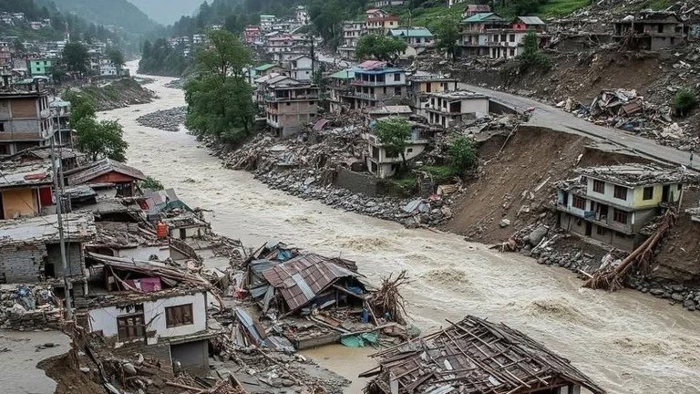 समुद्र सतहबाट ८,६०० फिट उचाइमा रहेको धराली गाउँमा बाढीको पानी हिमालयको भिरालोबाट बगेर आयो र भवनहरू बगायो। पछिल्ला रिपोर्टहरू अनुसार धेरै मानिसहरू अझै बेपत्ता छन्।